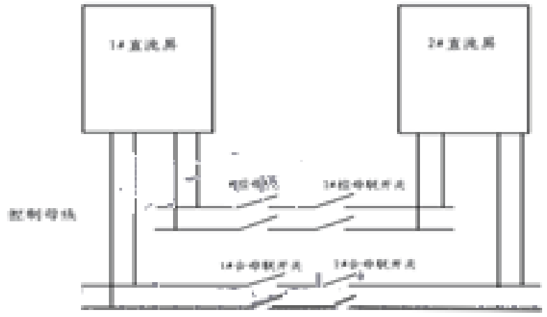 (2)直流屏1+1冗余系統(tǒng),是將兩臺(tái)直流屏輸出經(jīng)過(guò)母聯(lián)開關(guān)連接起來(lái)一起帶負(fù)載。當(dāng)一臺(tái)直流屏需求檢修時(shí),能夠由另一臺(tái)帶所有負(fù)載,圖示如下: