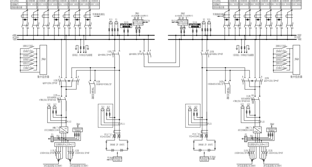 兩段母線排列后,康復(fù)絕緣設(shè)備以保證兩套直流屏體系均有絕緣監(jiān)測設(shè)備的監(jiān)視。
